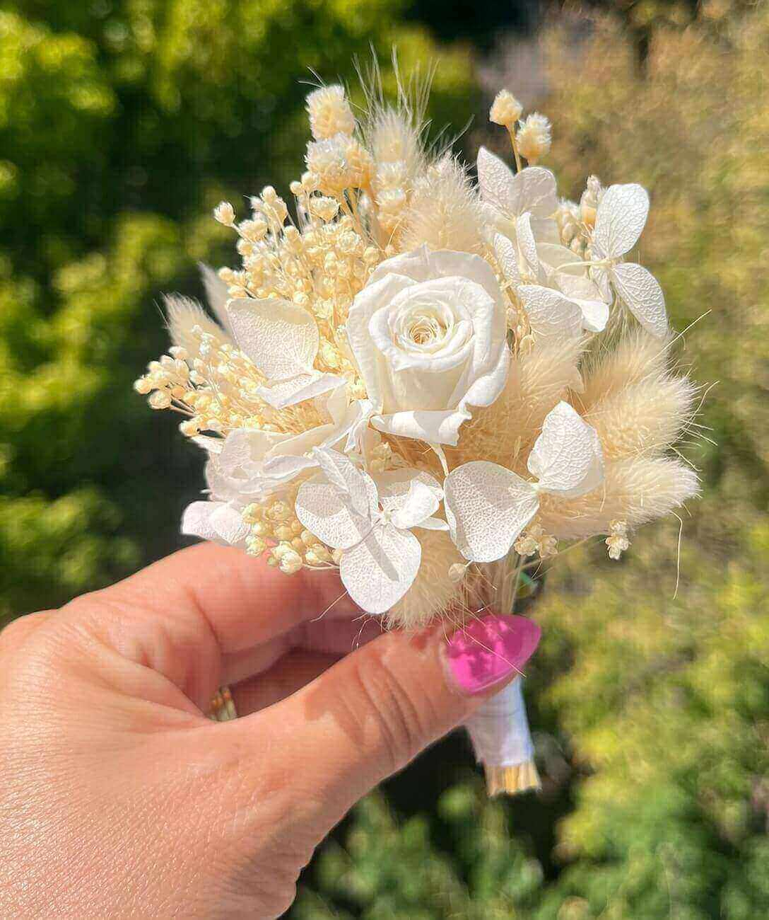 Cocardele sunt lucrate cu flori naturale uscate si criogenate