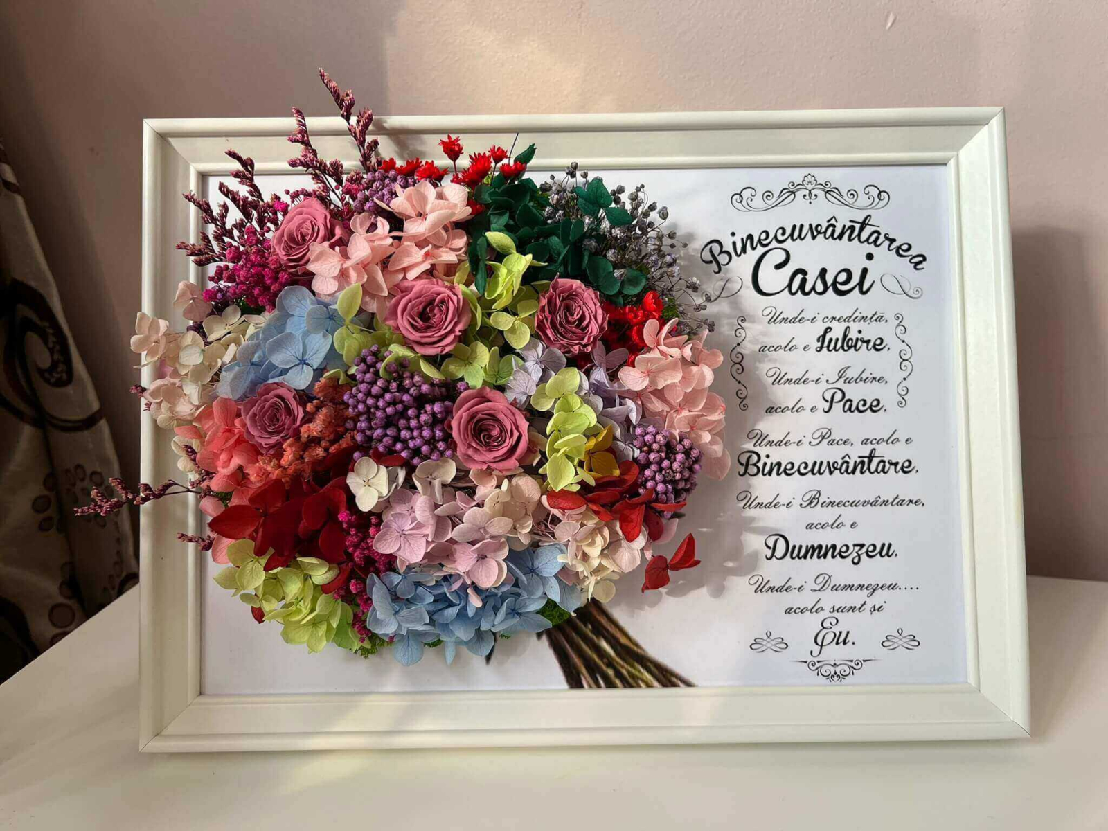 Tablou cu licheni Buchet flori cu mesaj Binecuvantarea casei