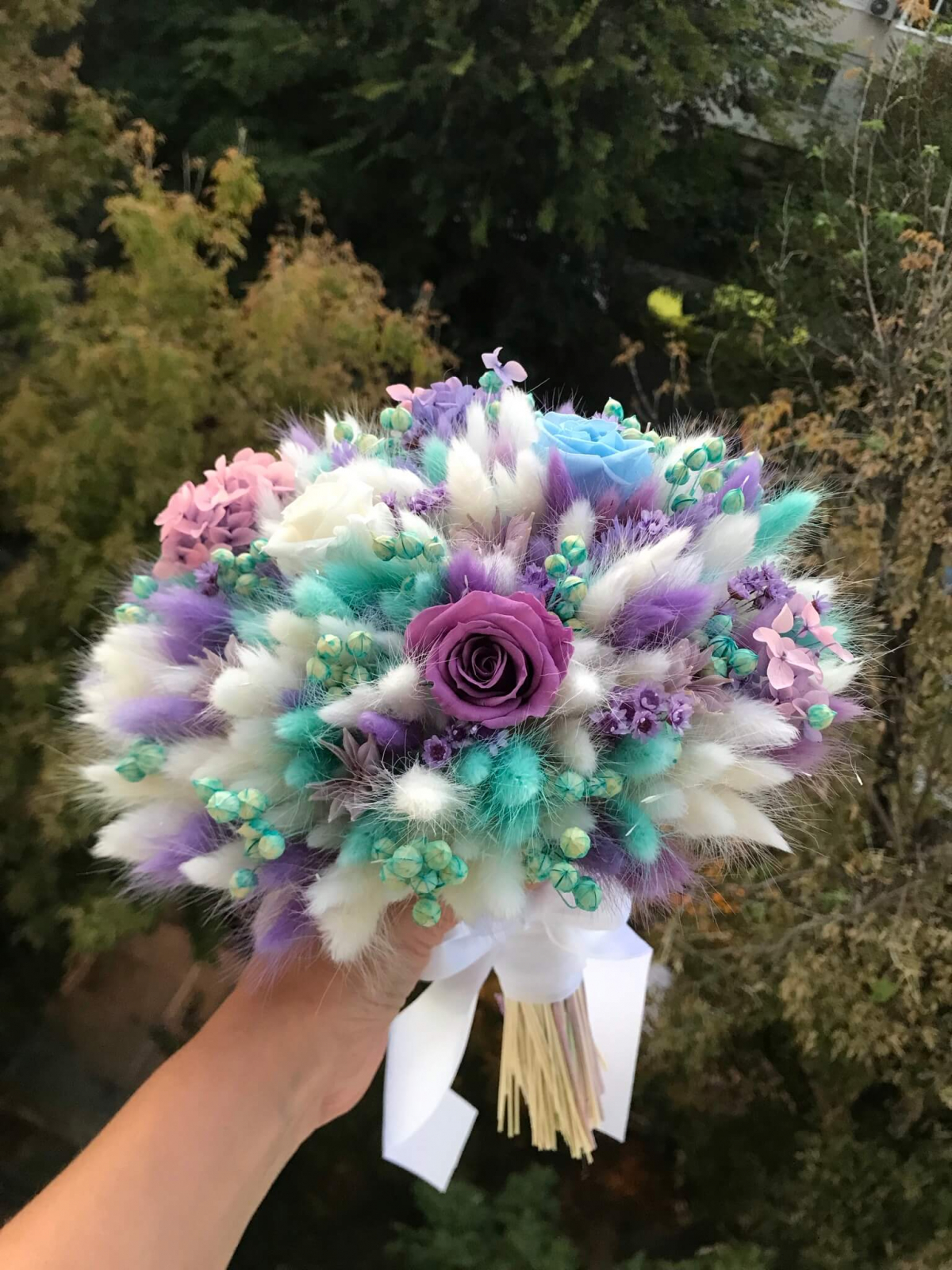 Buchetele sunt lucrate cu flori naturale uscate si stabilizate.