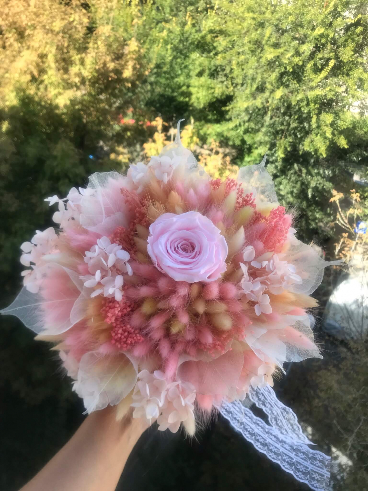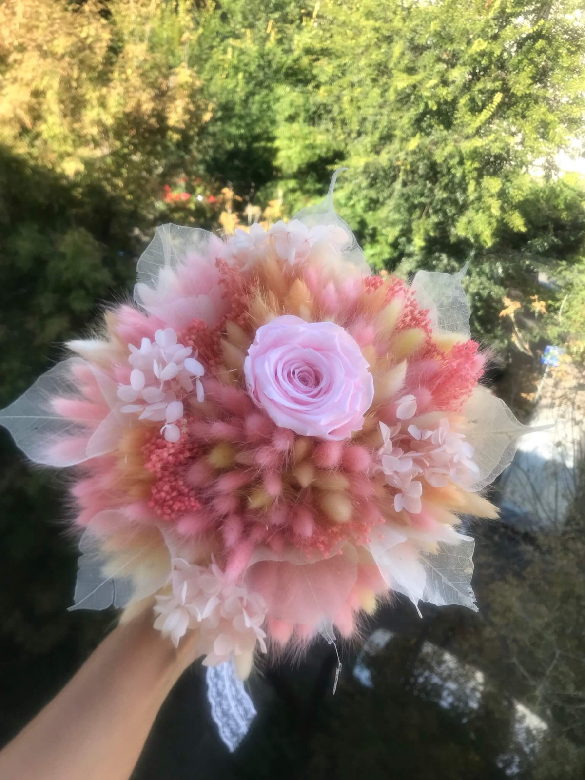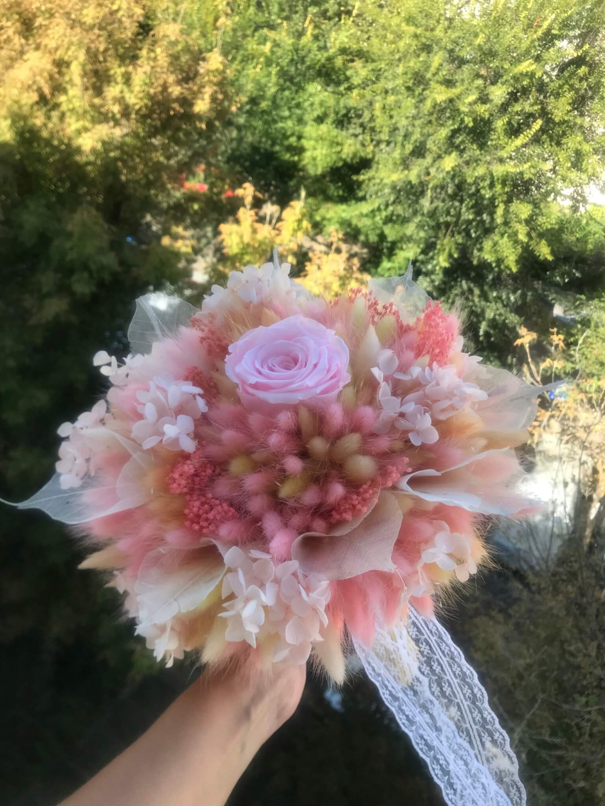 Buchetele sunt lucrate cu flori naturale uscate si stabilizate.