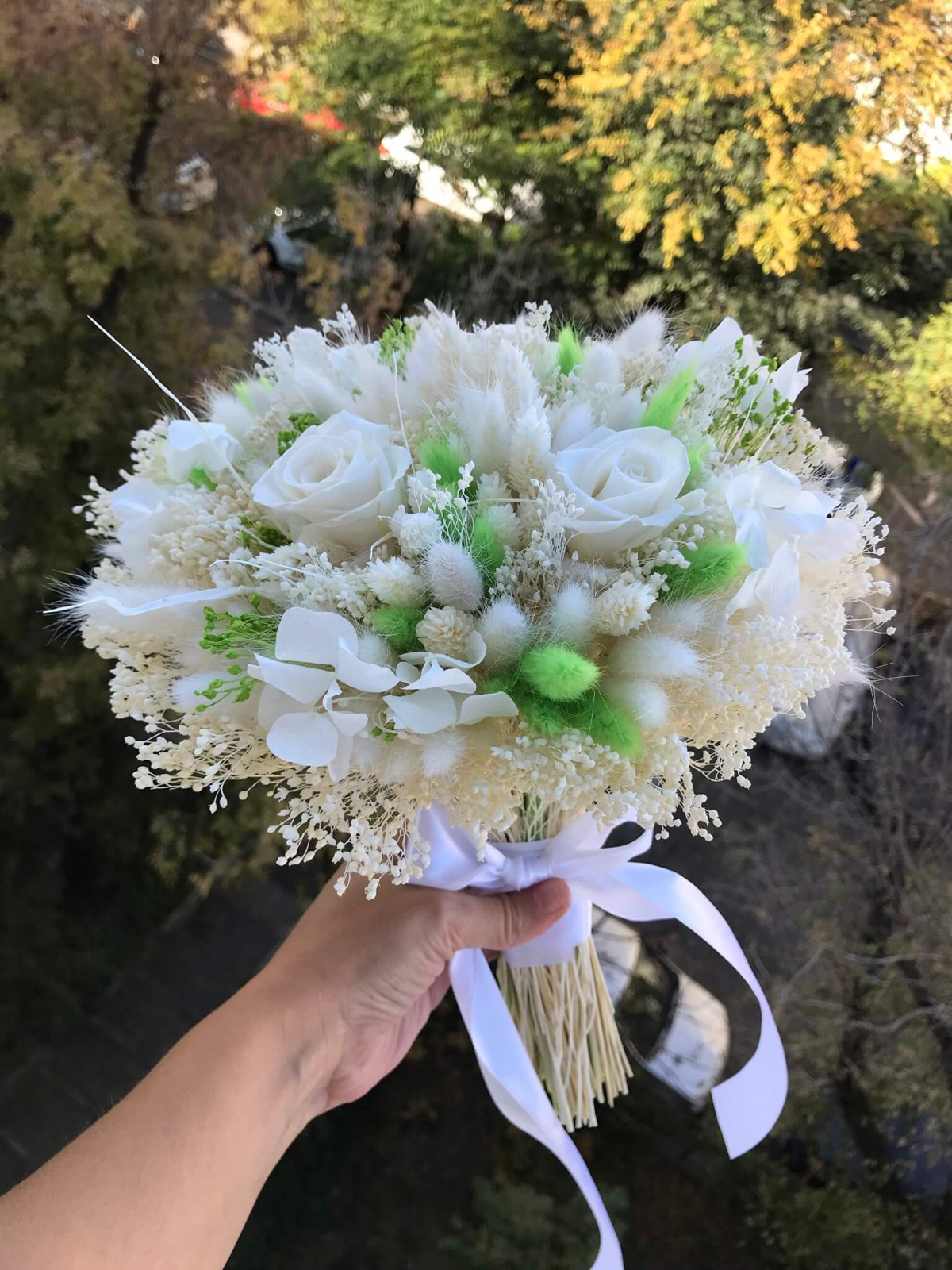 Buchetele sunt lucrate cu flori naturale uscate si stabilizate.