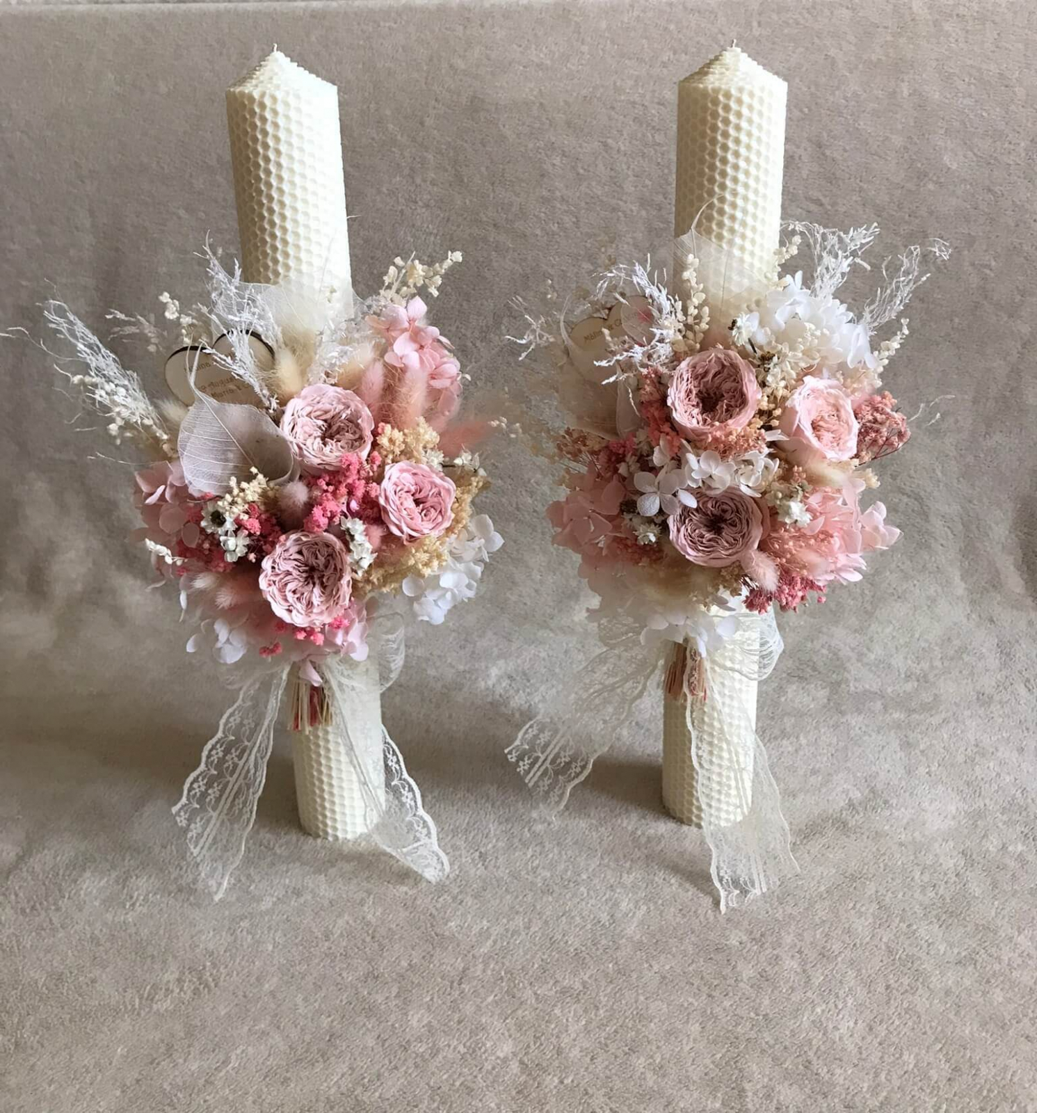Lumanari nunta din ceara naturala fagure parfumate cu flori naturale uscate si criogenate.