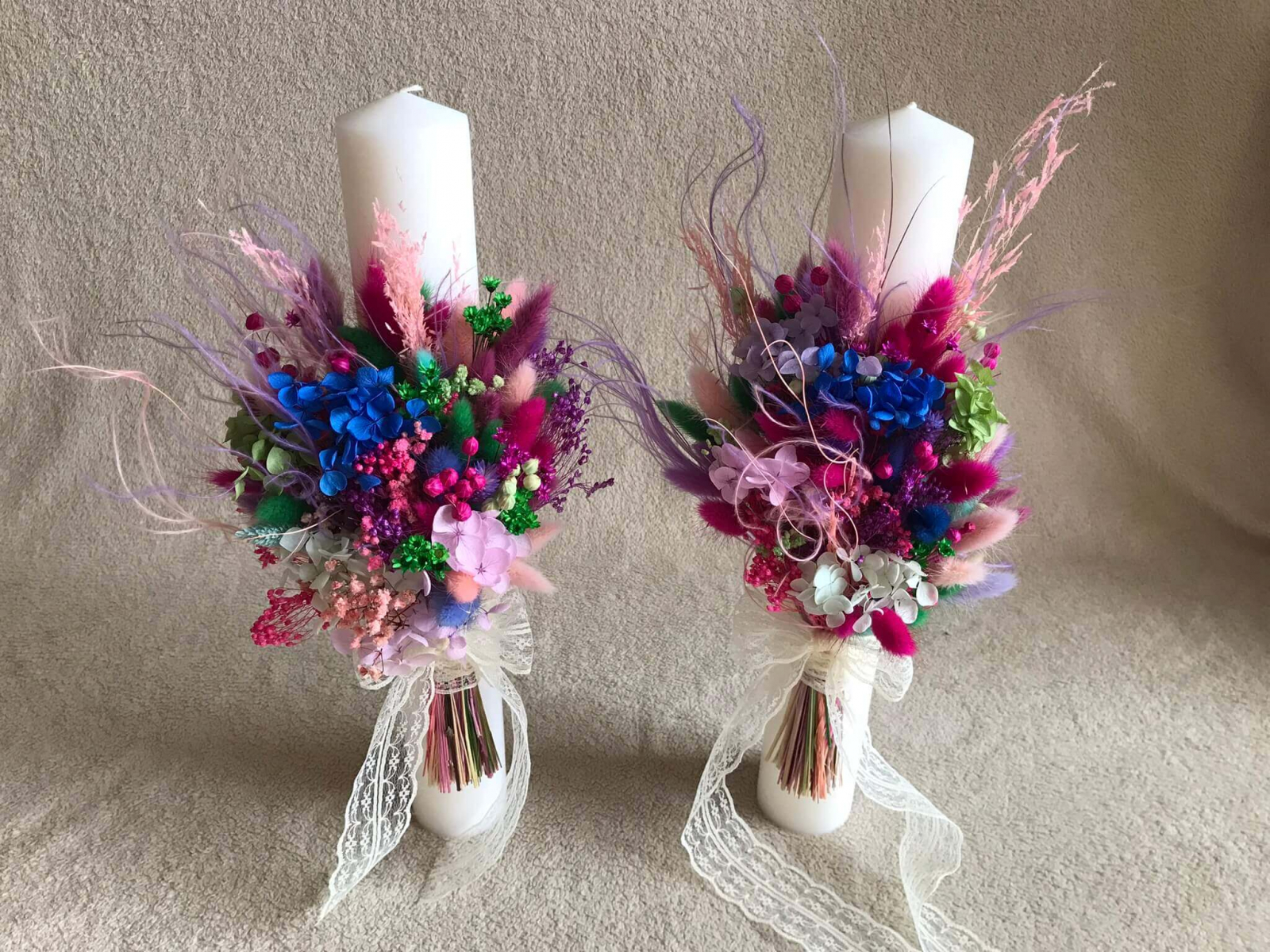 Lumanari nunta cu flori naturale uscate si criogenate.