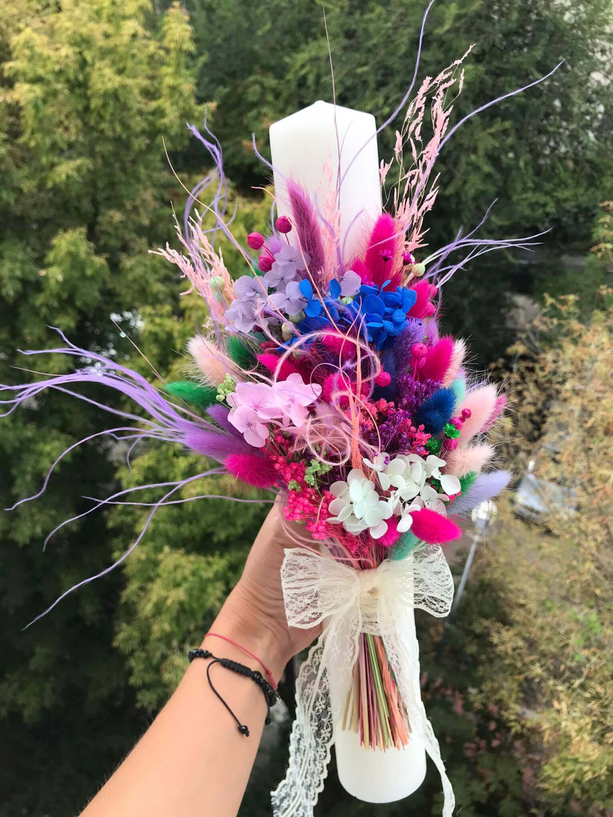 Lumanarile sunt unicat si nu pot fi 2 identice, florile si accesoriile pot diferii in functie de disponibilitatea stocului