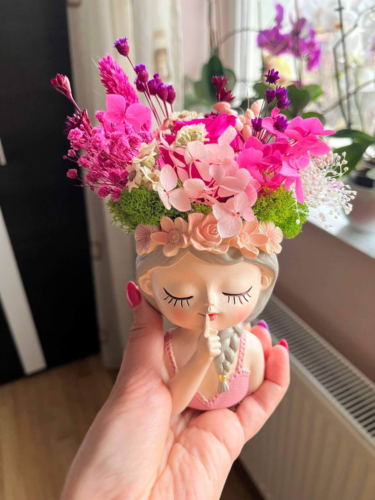Happy & handmade moss Vază decorativă ‘Fetița cu Flori Roz